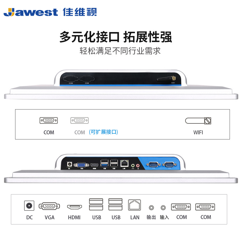 工業控制生產要求一體化操作更加緊密,人機交互更加頻繁,所以工業一體機幾乎全部采用觸摸屏方式替代鼠標鍵盤(緊急場合保留幾個應急按鈕)。操作系統有基于X86(CPU的一種架構,跟普通PC機一樣,現在有64位的X64架構)架構的XP,WIN7,Linux系統,還有基于ARM架構的嵌入式WinCE,Linux,Android系統。對于控制要求不是很高,但要求實時性要求很高的,采用嵌入式WinCE,Linux,android系統。國內生產嵌入式WinCE,Linux,android系統工業平板電腦一體機的廠商屈指可數。最有代表性的是佳維視工業觸摸一體機,自主研發設計,軟硬件定制性強,產品結構豐富,性能也比較穩定。