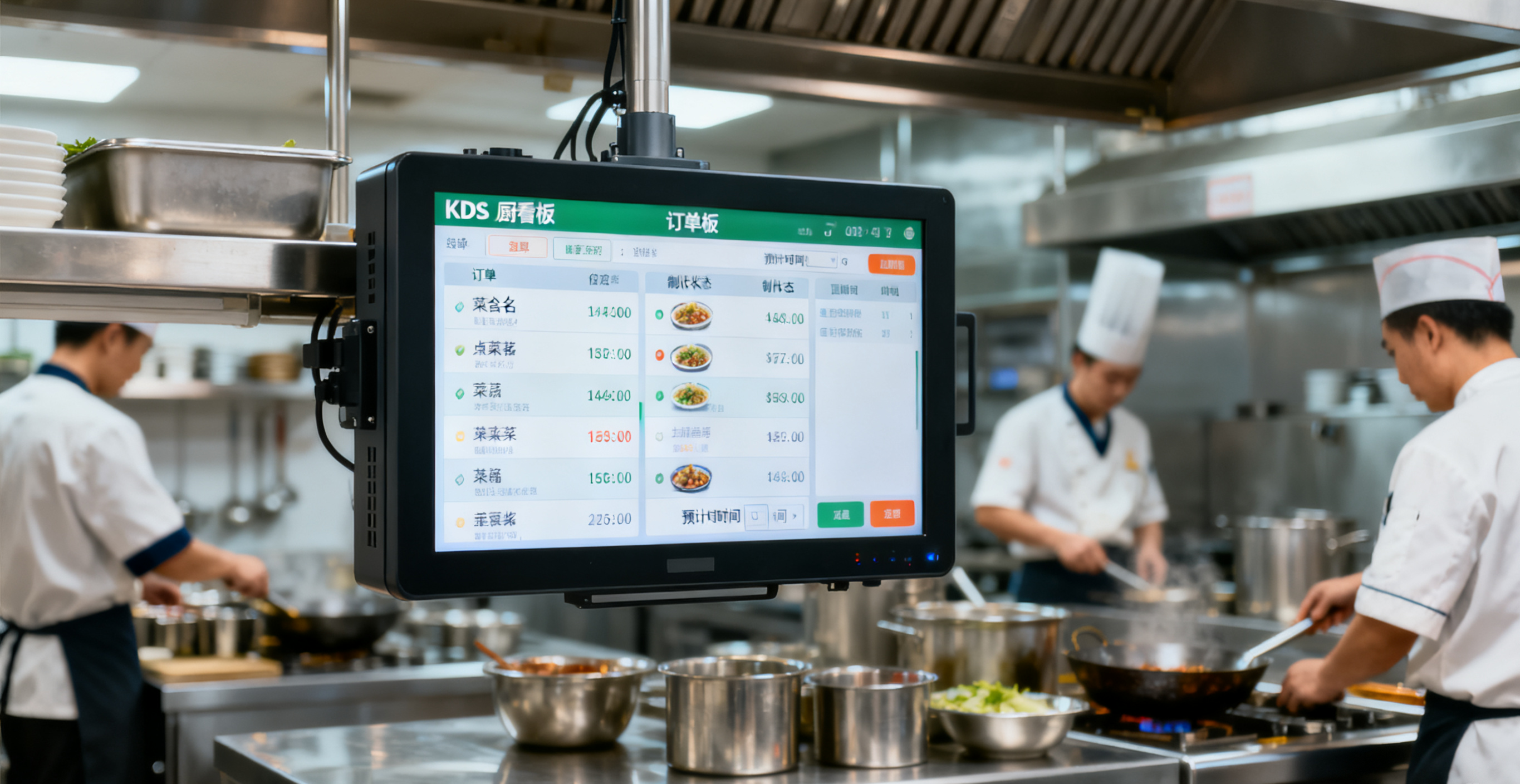 工業顯示器在KDS(廚房顯示系統)后廚看板中扮演著核心角色,其通過高可靠性、環境適應性及智能化功能,顯著提升了后廚的運營效率、管理水平和食品安全標準。以下是具體應用分析: