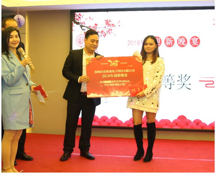 2018年1月28日下午5點,佳維視全體同仁齊聚中濠國際酒店,以“輕松愉悅,點燃激情”為主題,隆重地舉行了一場辭舊迎新的嘉年晚宴。“佳維視”人載歌載舞,歡聚一堂,在輕松愉悅的晚會氛圍中,各顯神通大放異彩,在歡身笑語中共賀新春佳節之喜!