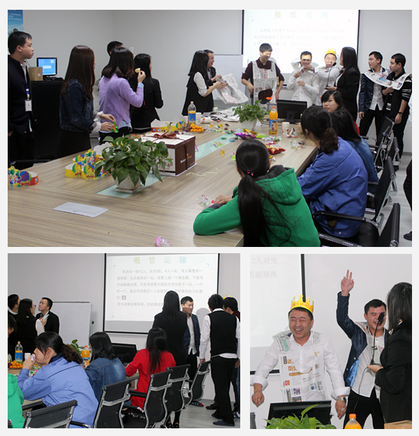 接著,吸管運輸、報紙拔河游戲相繼展開。生日員工童心大發,踴躍參與,現場一片歡聲笑語。游戲不僅能夠增進同事間的友情,更是能夠消解工作中的壓力。游戲結束時,10多位幸運壽星獲得了神秘的禮品。