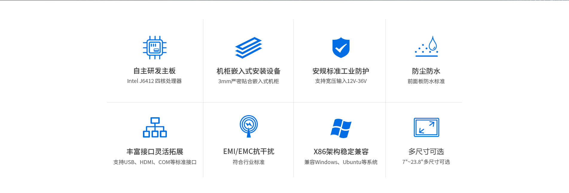 | 包裝清單 | 工業一體機、電源線、適配器、安裝配件、說明書、保修卡 | |