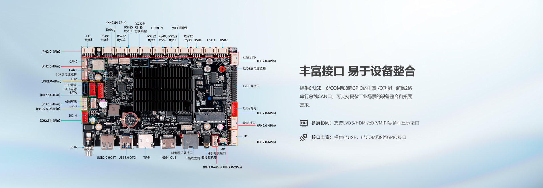 和三屏異顯,I/O拓展豐富,為工業(yè)自動(dòng)化、AI機(jī)器人、智能終端、