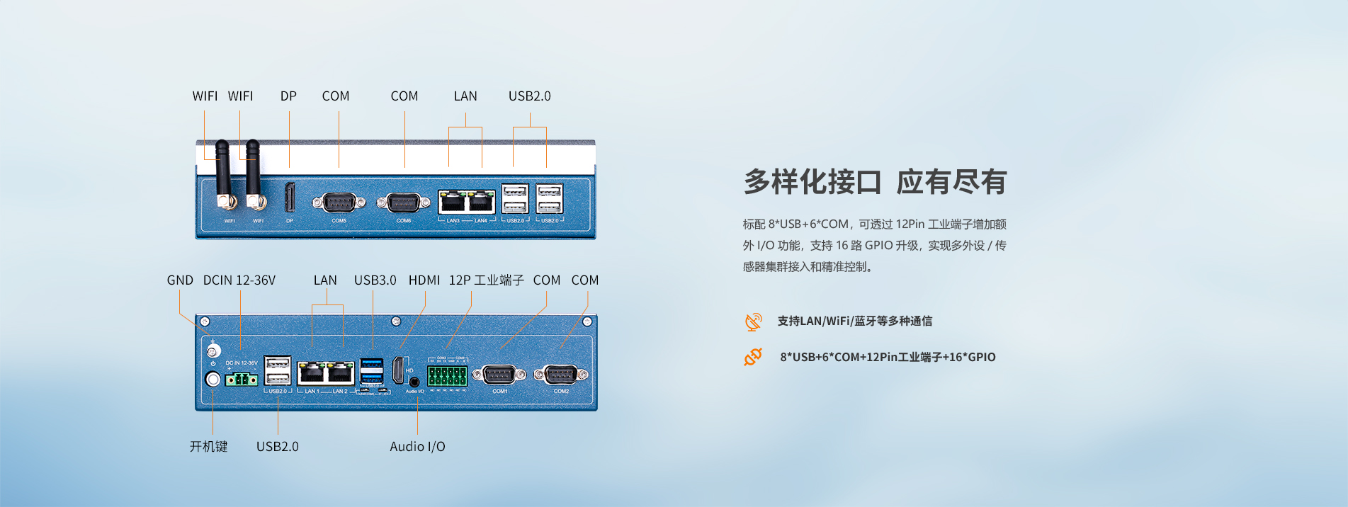 | 串口 | 支持5*RS232串口插座和1*485 | |